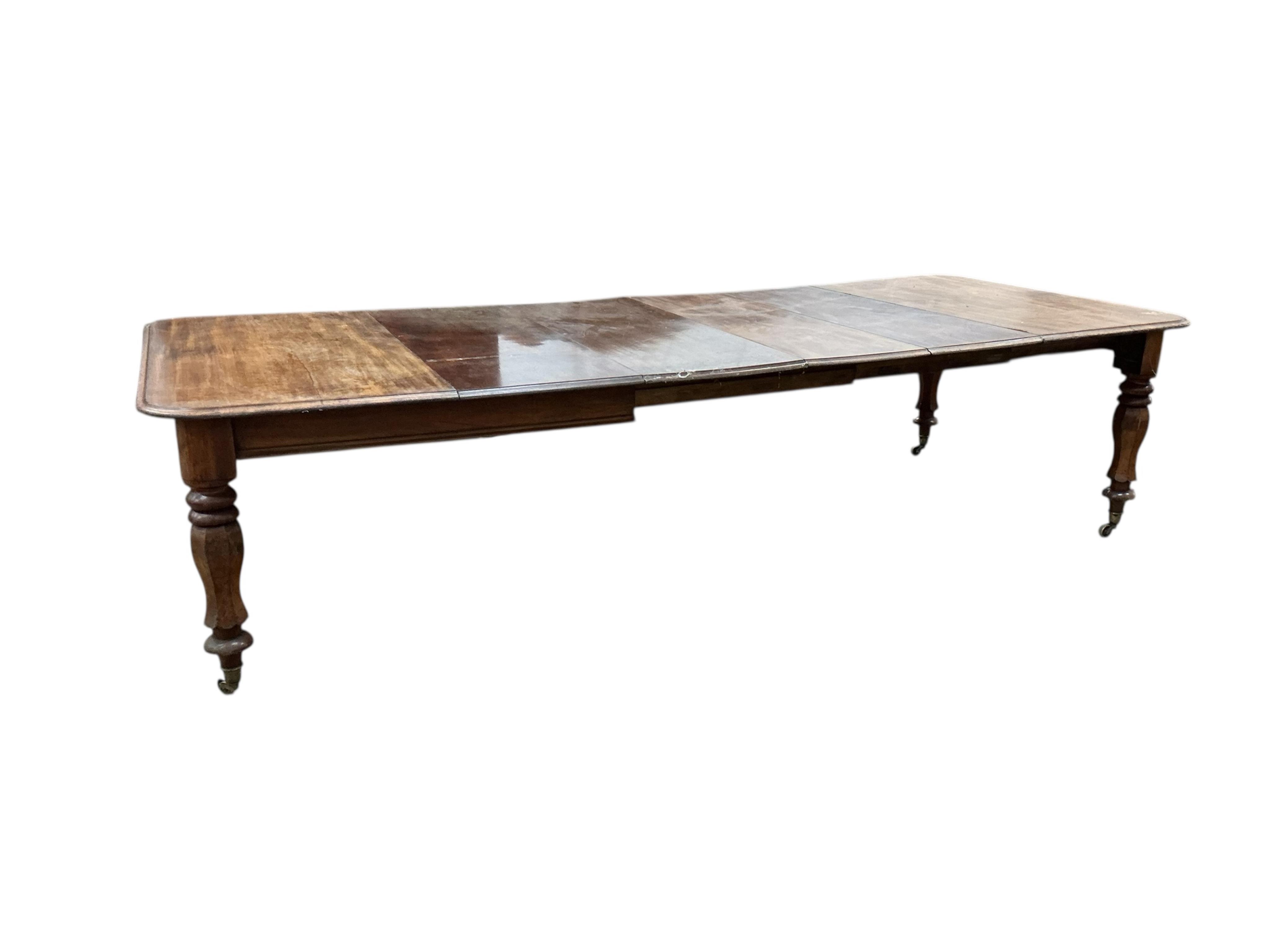 Lot 1447 , A Victorian mahogany dining table, four extra leaves, 300cm extended, depth 126cm, height 74cm