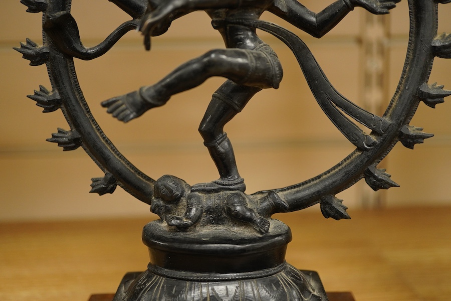 A late 19th / early 20th century North Indian Shiva Nataraja bronze figure, 23cm, on wood plinth