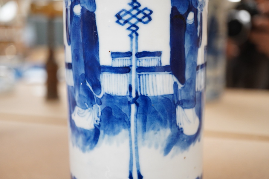 A Chinese blue and white sleeve vase decorated with figures, 26cm high