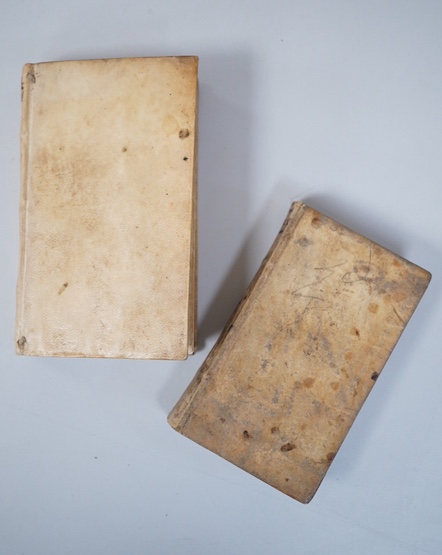 ° Seneca, Lucius Annaeus - Tragoediae. Cum notis Th. Farnabii. engraved pictorial title; contemp. vellum, mss. lettered on spine, 12mo. Amsterdam: Johannem Blaeu, 1656; sold with another edition (old vellum, 12mo. Amsterdam: Elizivir, 1642). (2)