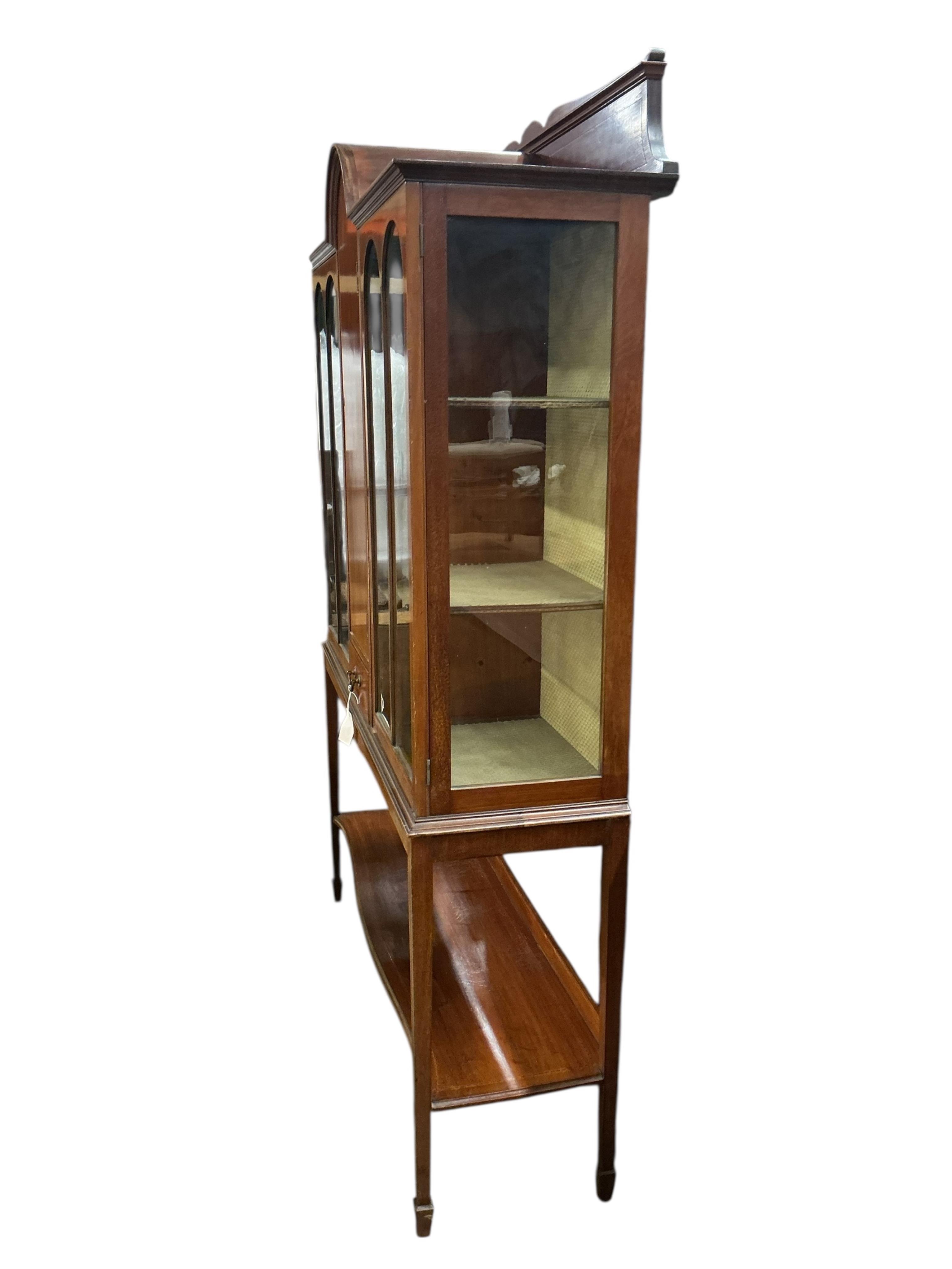 An Edwardian inlaid mahogany display cabinet, width 121cm, depth 38cm, height 180cm