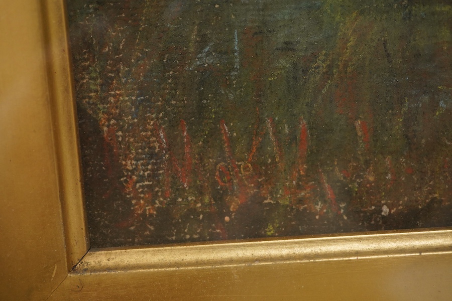 C. P monogrammist, woodland pond, Polak & Co label verso, pastel, ornate gilt framed, 37 x 27cm