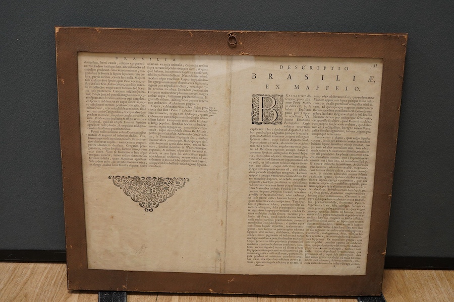 Johannes Blaeu (Dutch, 1596-1673), ‘Brasilia’, hand coloured engraved map of Brazil, text verso, 42 x 52cm