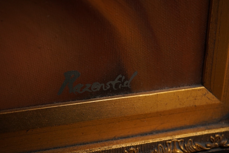 After Raphael (Italian, 1483-1520), ‘Madonna della Seggiola’, decorative oil on canvas, ornate framed, 49 x 39cm