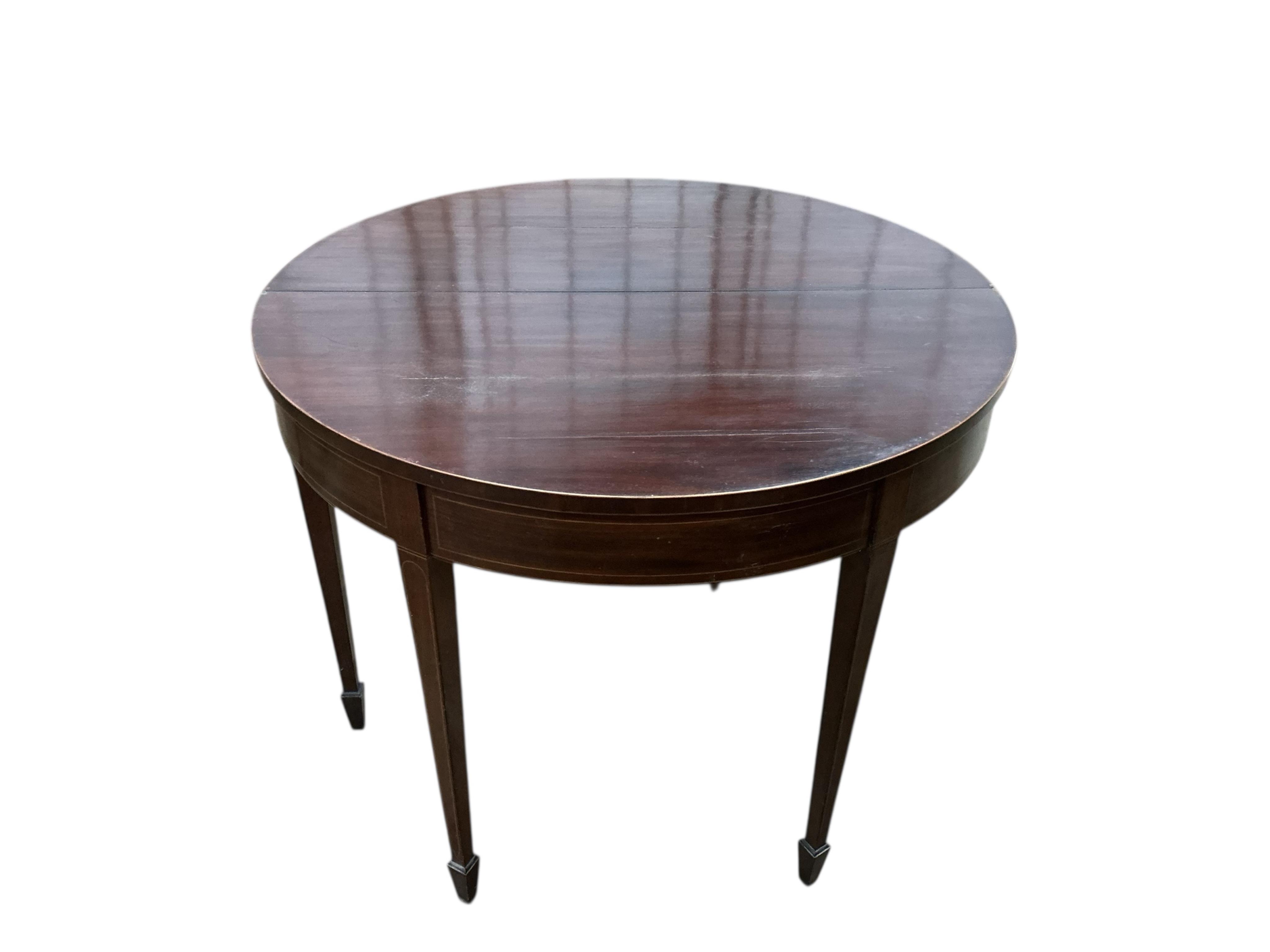 Lot 1459 , A George III mahogany banded D shaped tea table, width 91cm, depth 46cm, height 74cm