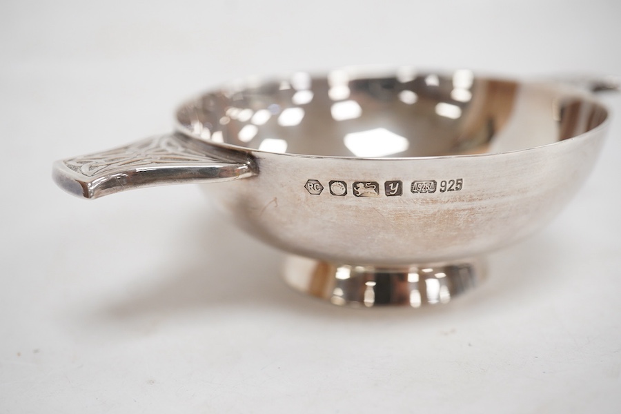 A modern silver quaich, by Carr's of Sheffield, Sheffield, 1998, the lug handles with Celtic style decoration, 12.1cm over handles, 3.2 oz.