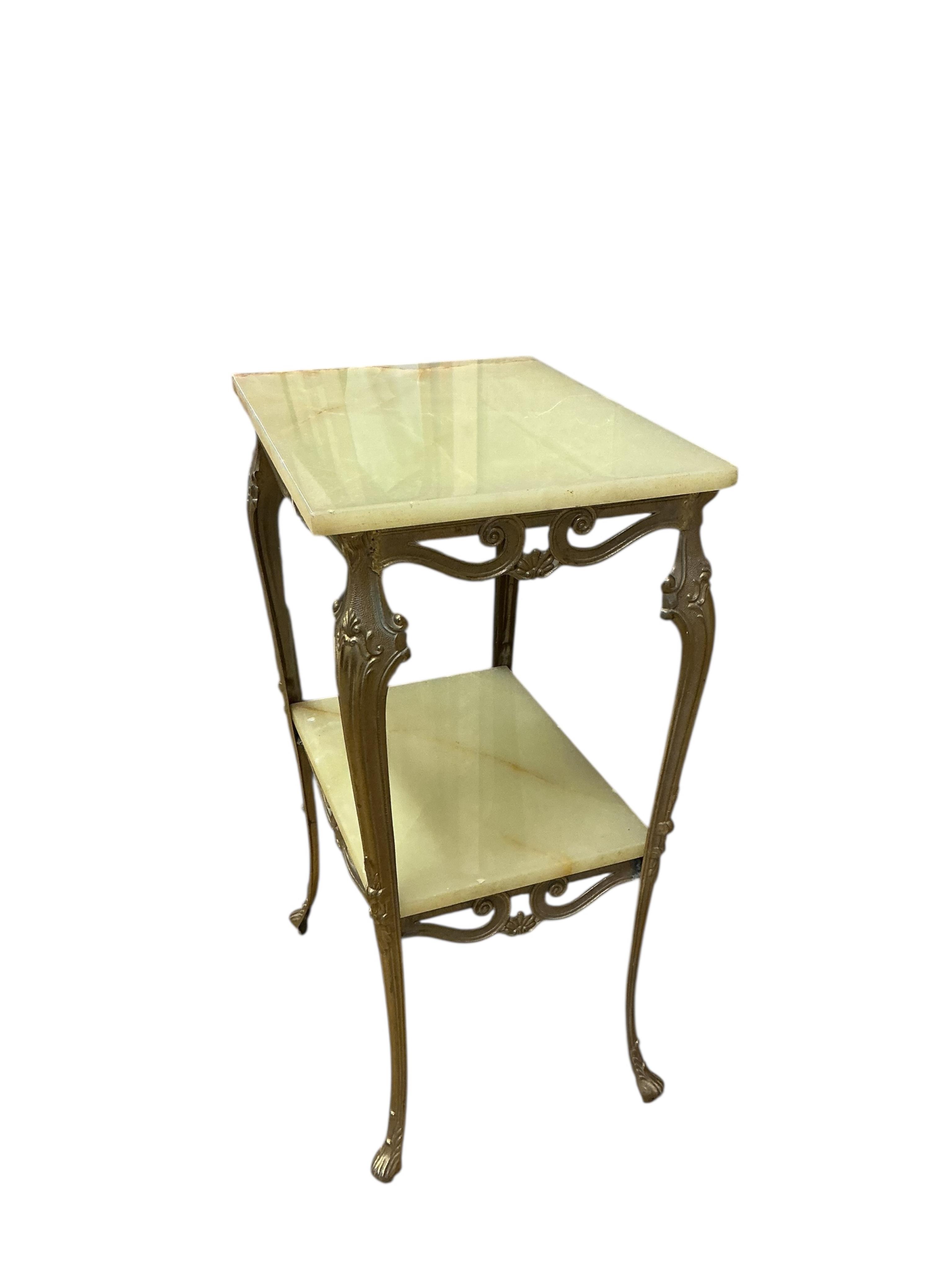 Lot 127 , A green onyx gilt metal two tier occasional table, width 47cm, depth 35cm, height 75cm
