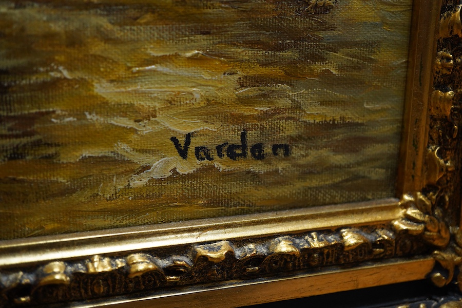 Lot 742 , Varden, riverscape with boats, signed, contemporary oil on canvas, 49 x 60cm