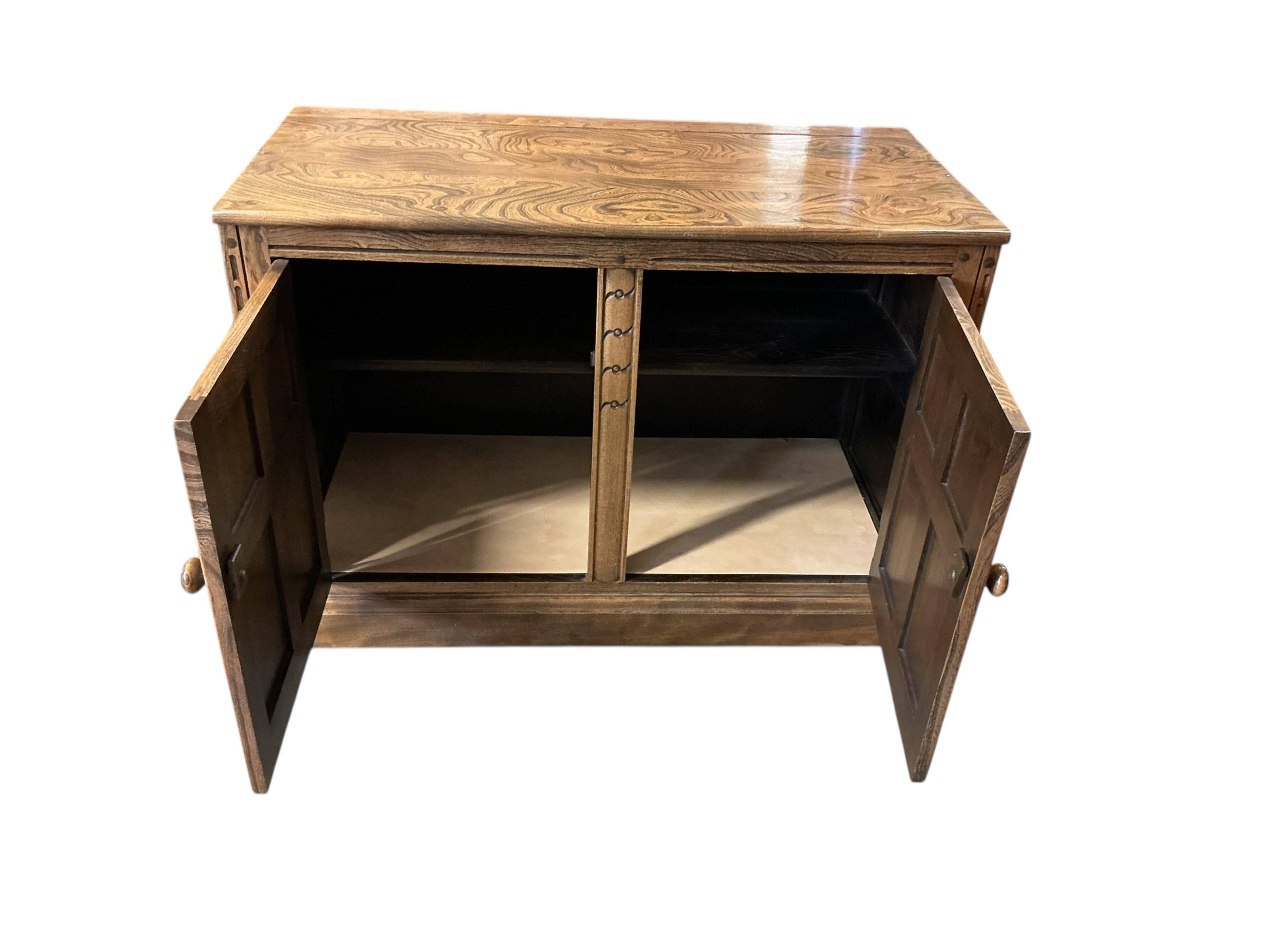 An Ercol elm two door cupboard, width 98cm, depth 50cm, height 71cm