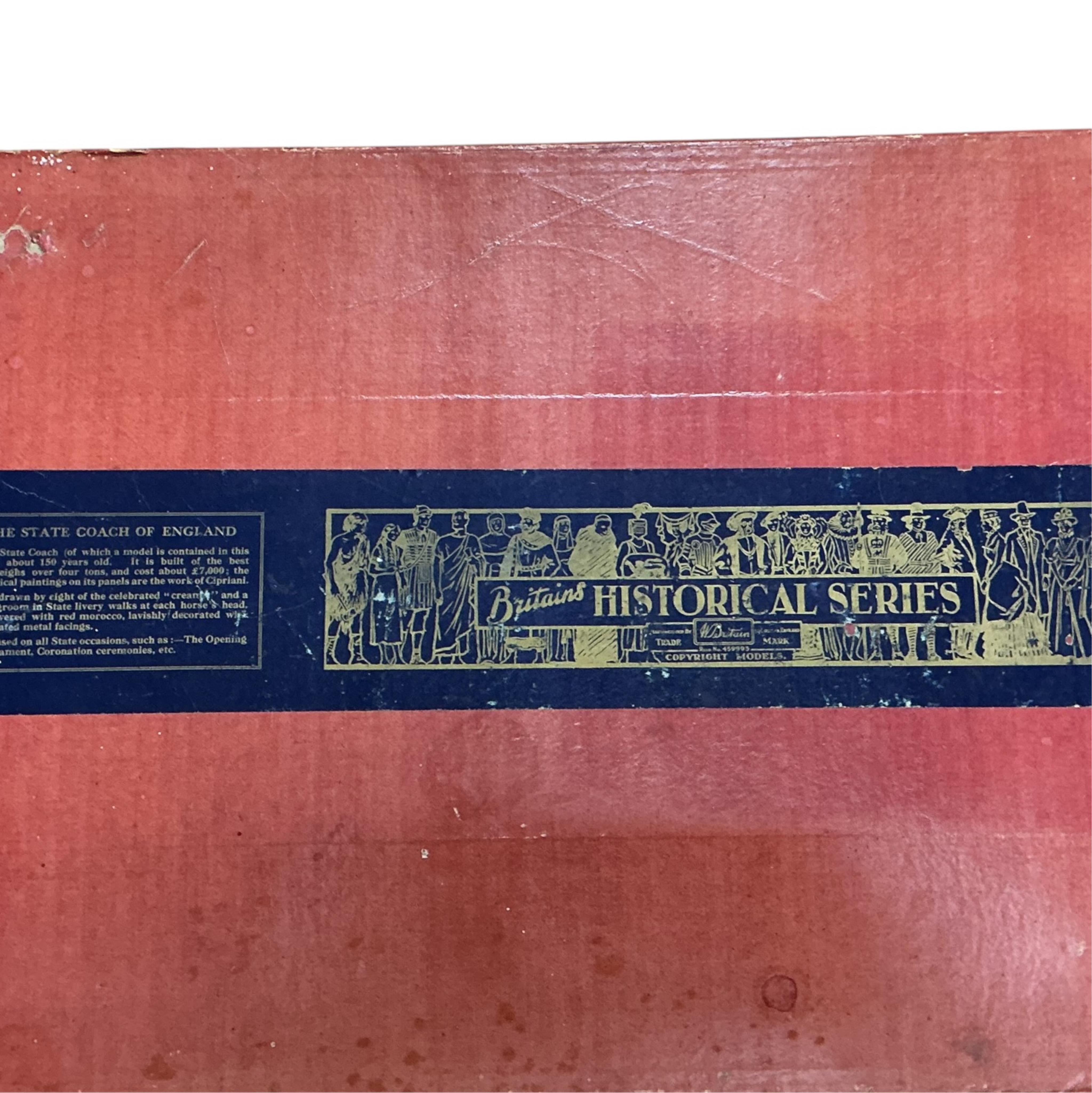 A boxed Britains Historical Series State Coach of England (No.1477), George VI Coronation procession, 1937, the set with the original inner lift-out tray, comprising of the Coronation coach, mounted Horse Guards Life Gua