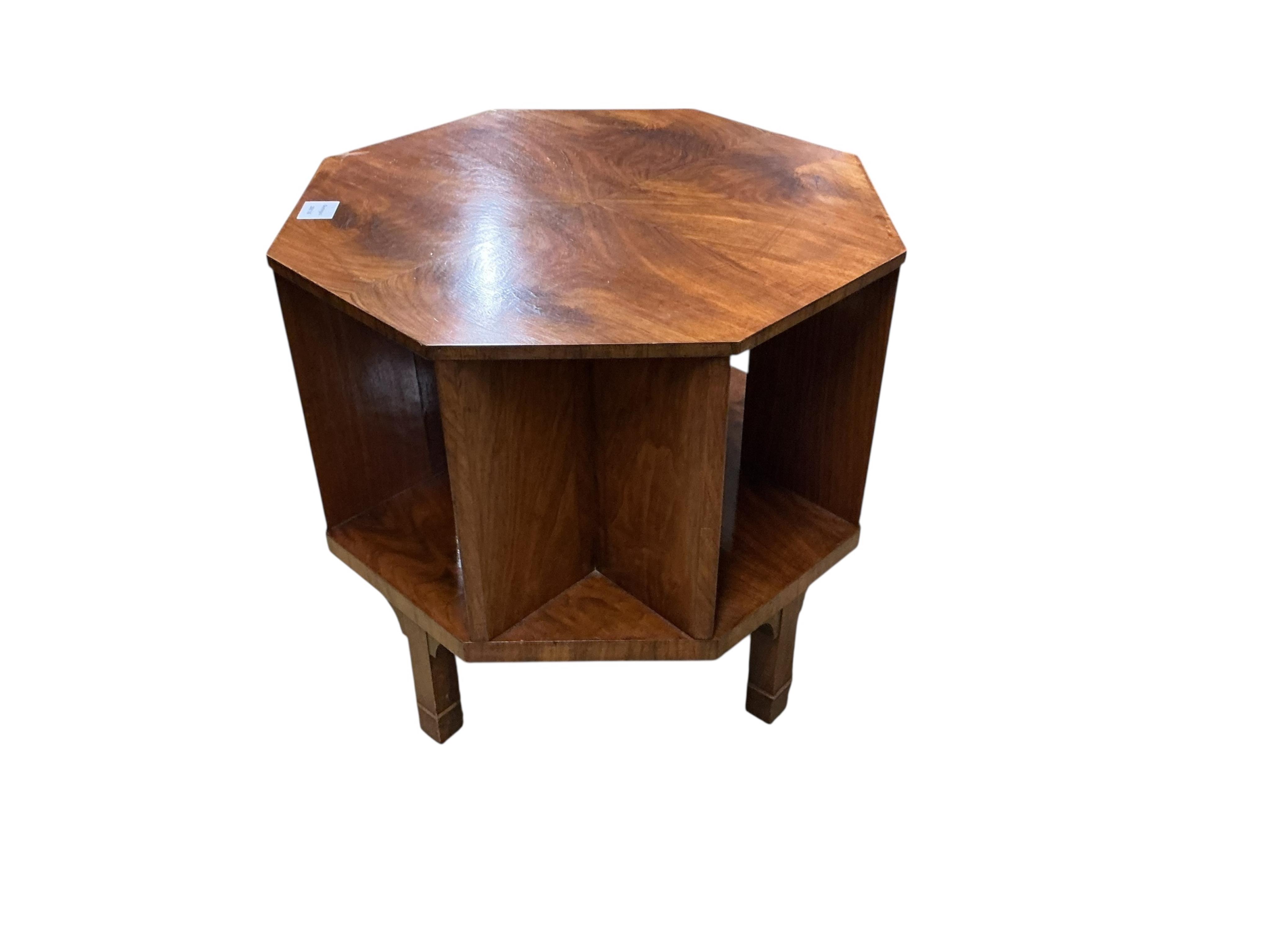 Lot 231 , An Art Deco octagonal walnut revolving book table, width 56cm, depth 56cm, height 55cm