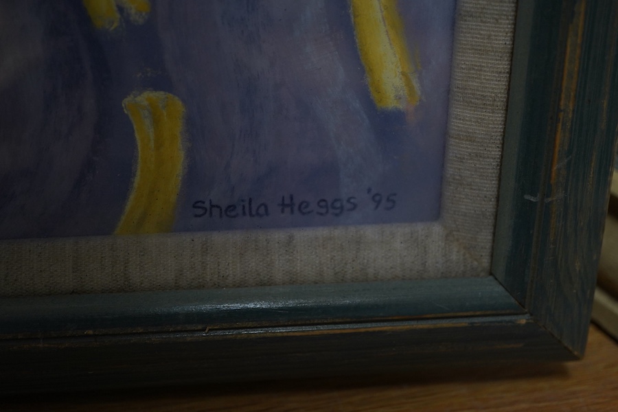 Sheila Heggs, coastal view with pier, signed and dated ‘95, pastel and mixed media, 36 x 53cm