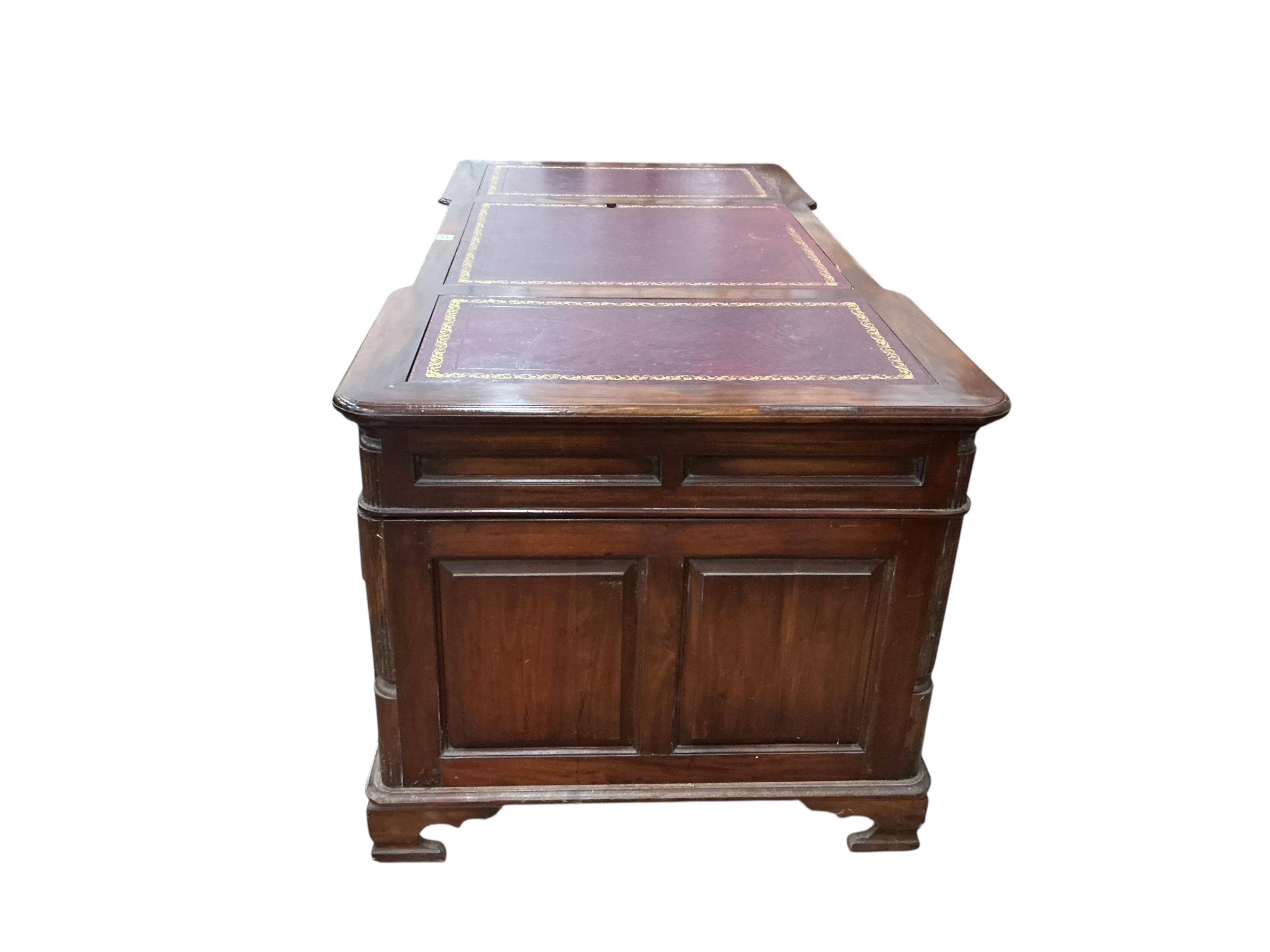 Lot 1043 , A George III style mahogany pedestal partners desk, with an inset red leather top, width 180cm, depth 90cm, height 79cm