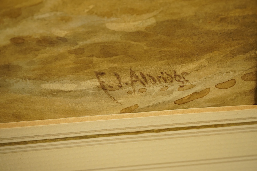 Frederick James Aldridge (1850-1933), Fishing boats in a rough sea, signed, watercolour, 35 x 53cm