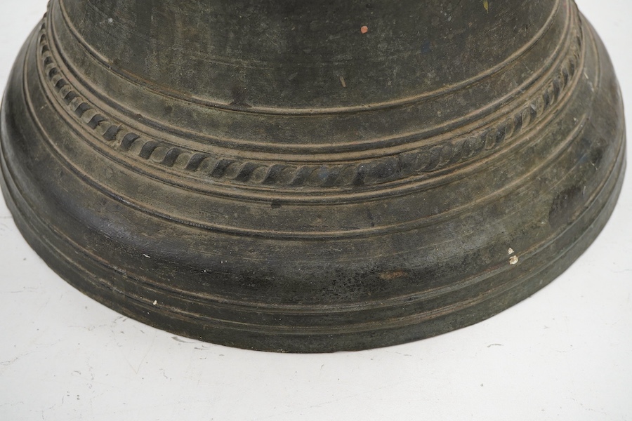A large Dutch cast bronze bell with blind gothic decorations, diameter 40cm