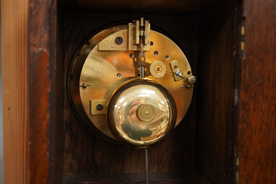 An oak cased mantel clock, Chas Frodsham, 23cm high x 18.5cm wide