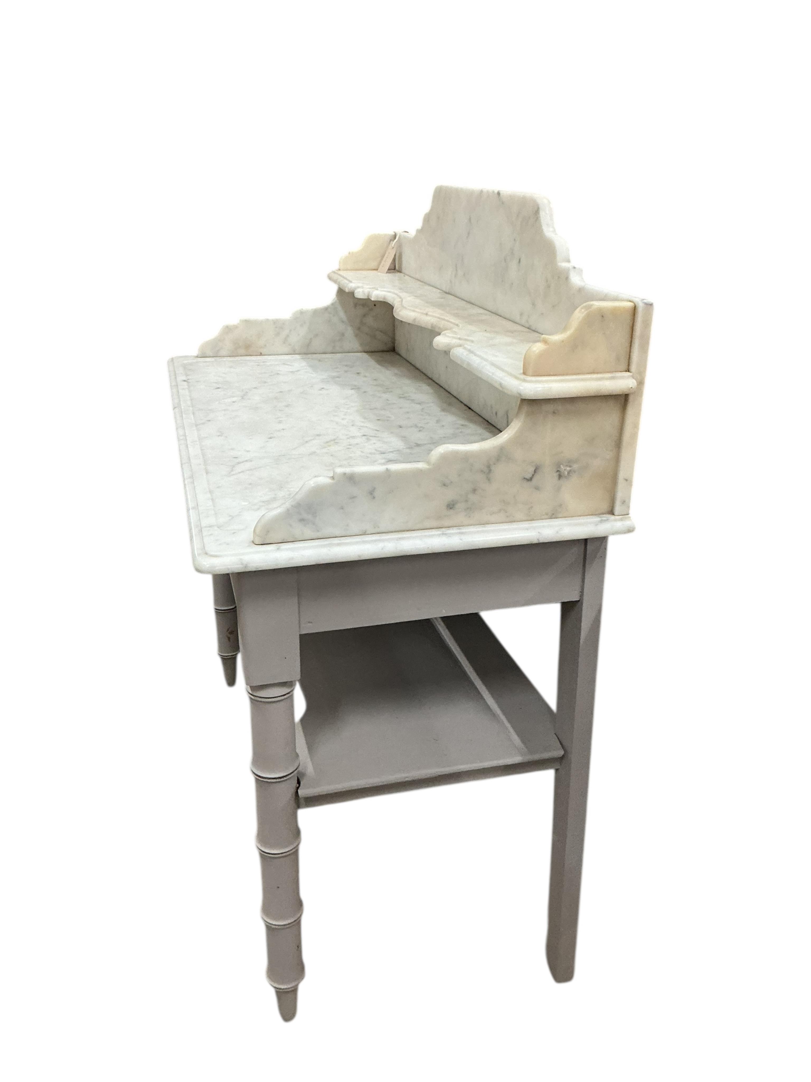 A French marble faux bamboo painted washstand, width 100cm, depth 55cm, height 130cm