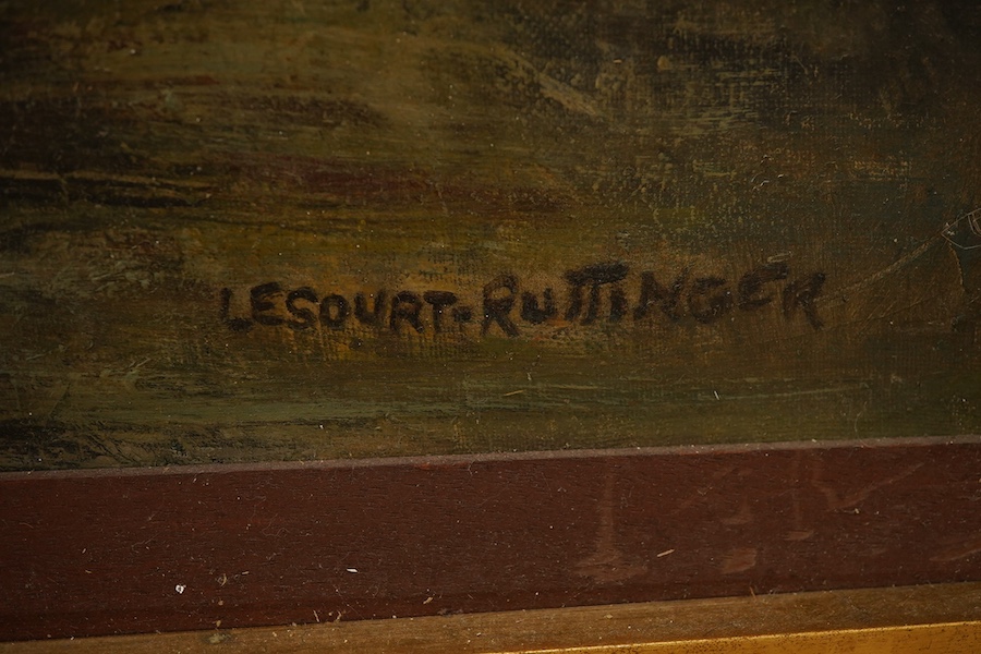 Ghislaine Lesourt-Rottinger (b.1961), surreal figure a holding a bird, signed, oil on canvas, 91 x 64cm