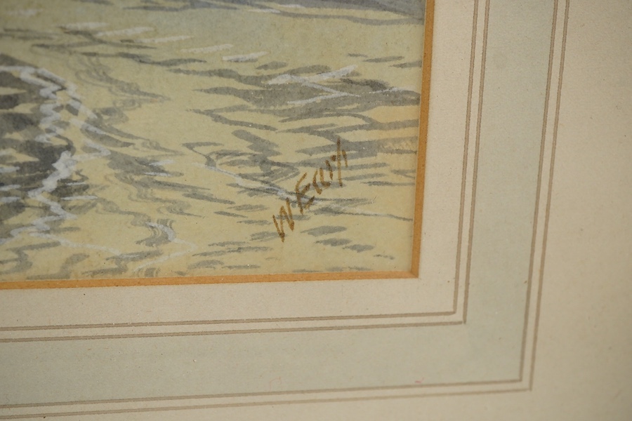 Edwin Earp (1851-1945), rocky coastal view with ships, signed, watercolour, 22 x 52cm