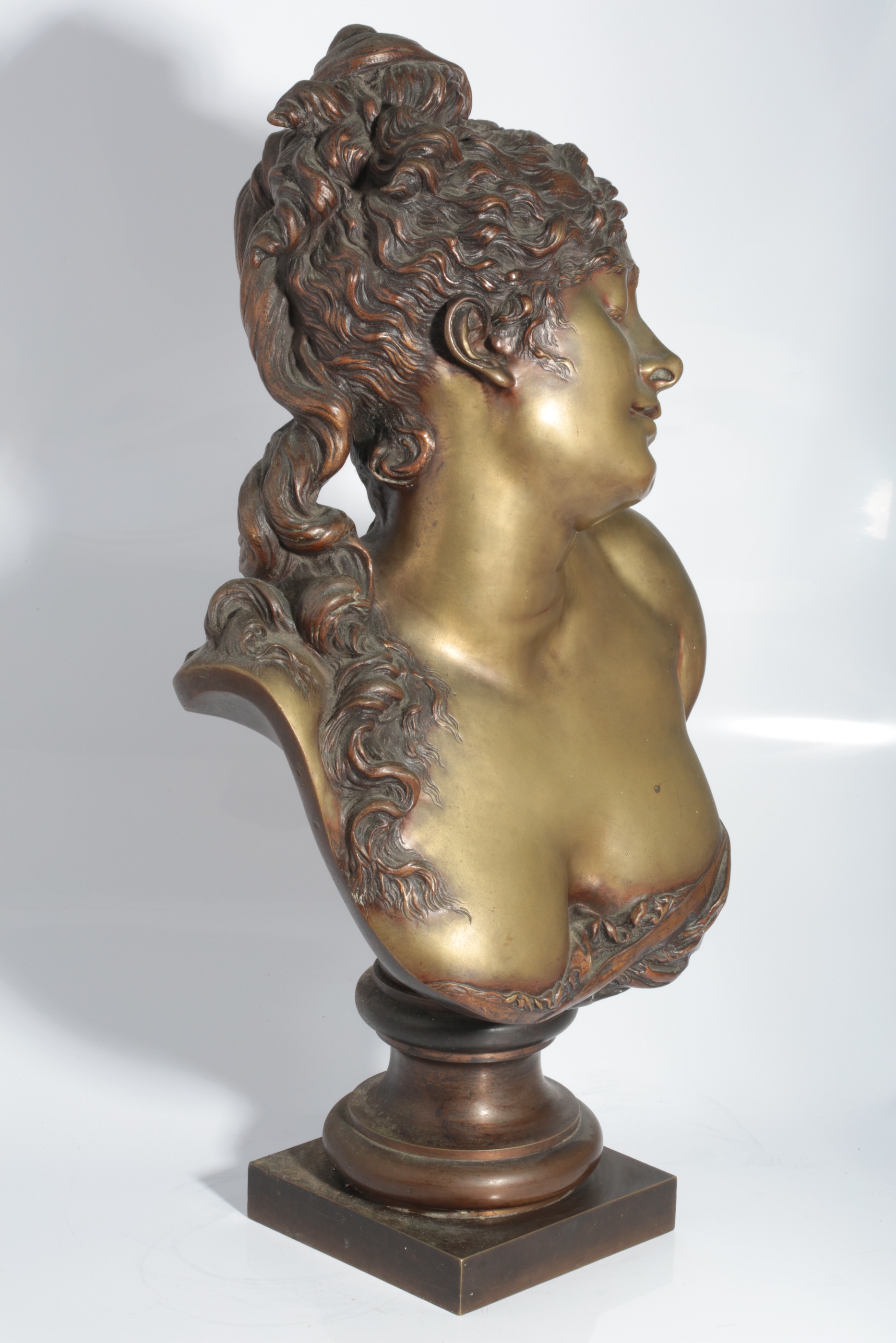 Albert-Ernest Carrier-Belleuse (1824-1887). A bronze bust 'Le Sommeil', signed to the reverse, on a waisted socle, raised on a square plinth, 60cm high