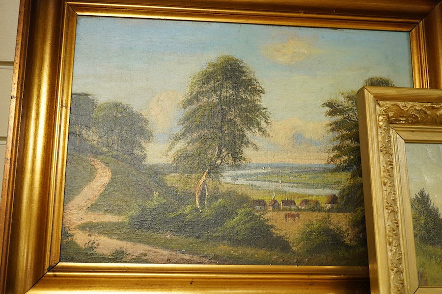 19th century, Danish School, pastoral landscapes, one initialled CH, two oils, one on board, largest 32 x 45cm