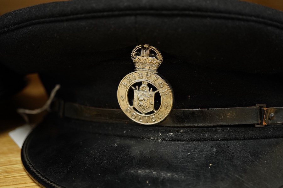 Brighton Police helmet with Queen's crown helmet plate and peak cap with King's crown plate (helmet maker: Sanders & Brightman, Luton), (2).