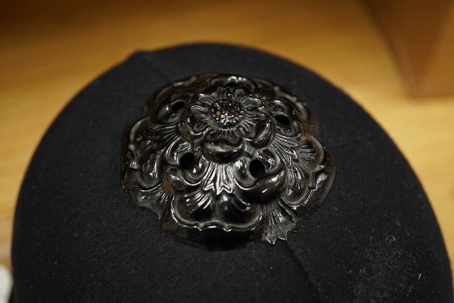 Lot 126 , Eastbourne County Borough Police Helmet, also with helmet plates, cap & uniform badges, (12).