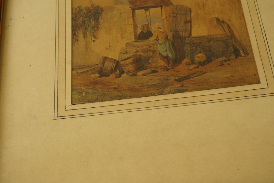 Henri Renault (French, exh. 1870-1872), two figures at a well, signed, watercolour, 10 x 13cm