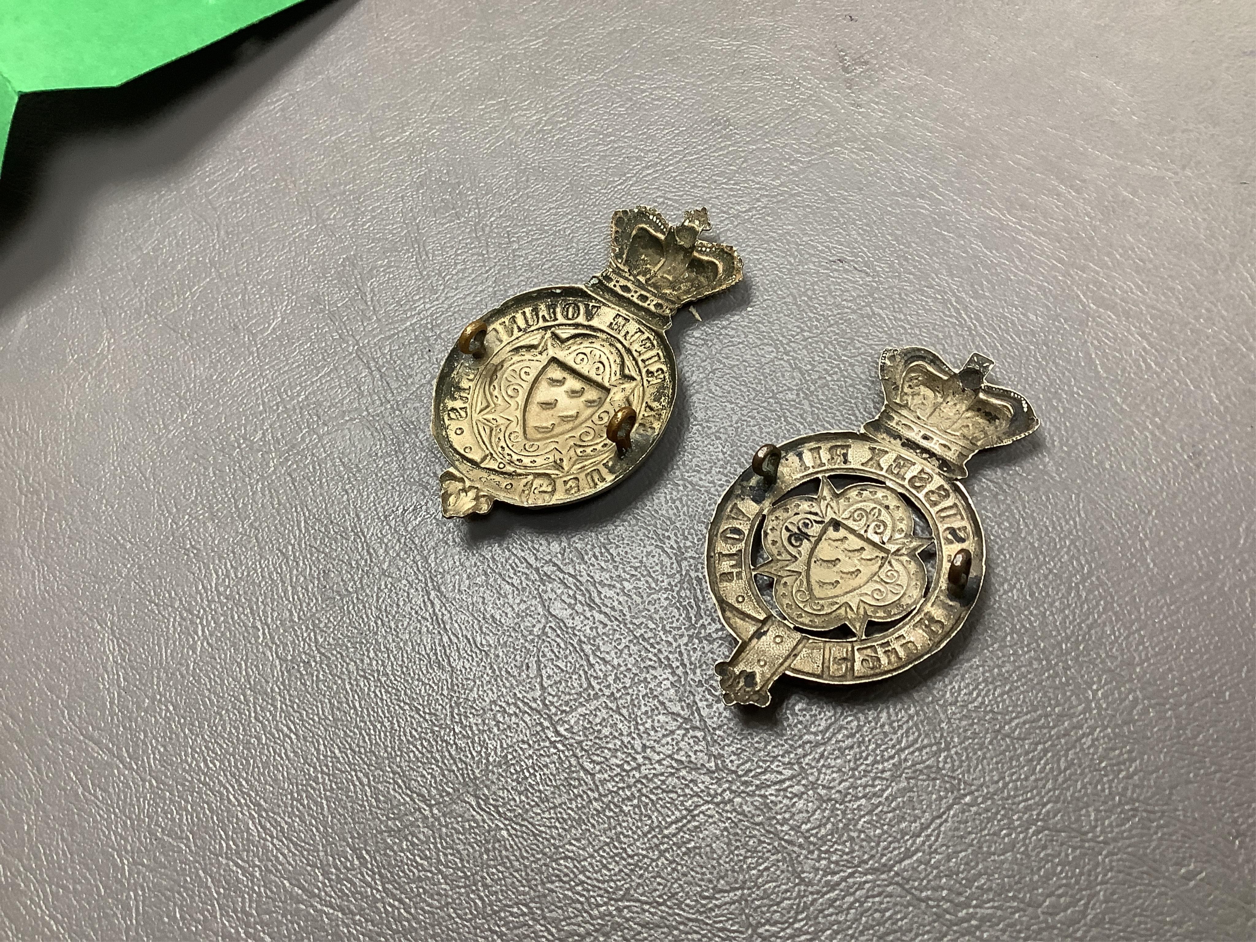 Victorian Sussex Rifle Volunteers Shako / Glengarry badges: circa 1866 & 2nd (Worthing) c.1880-7, (2).