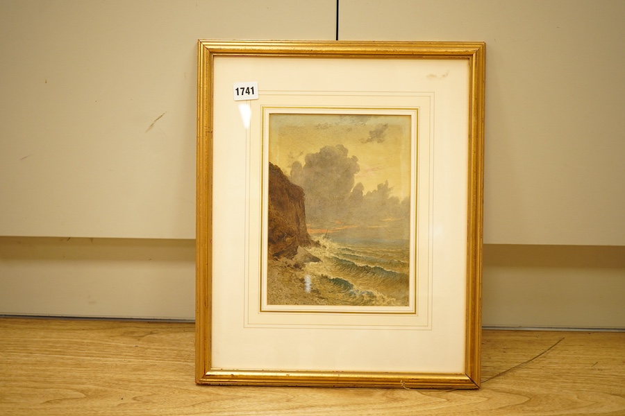 William Eyre Walker (1847-1930), 'On the North Devon Coast', signed with monogram and dated ‘80, together with another by the same hand, stormy coastal view, ex. Abbott & Holder, two watercolours, 17 x 34cm