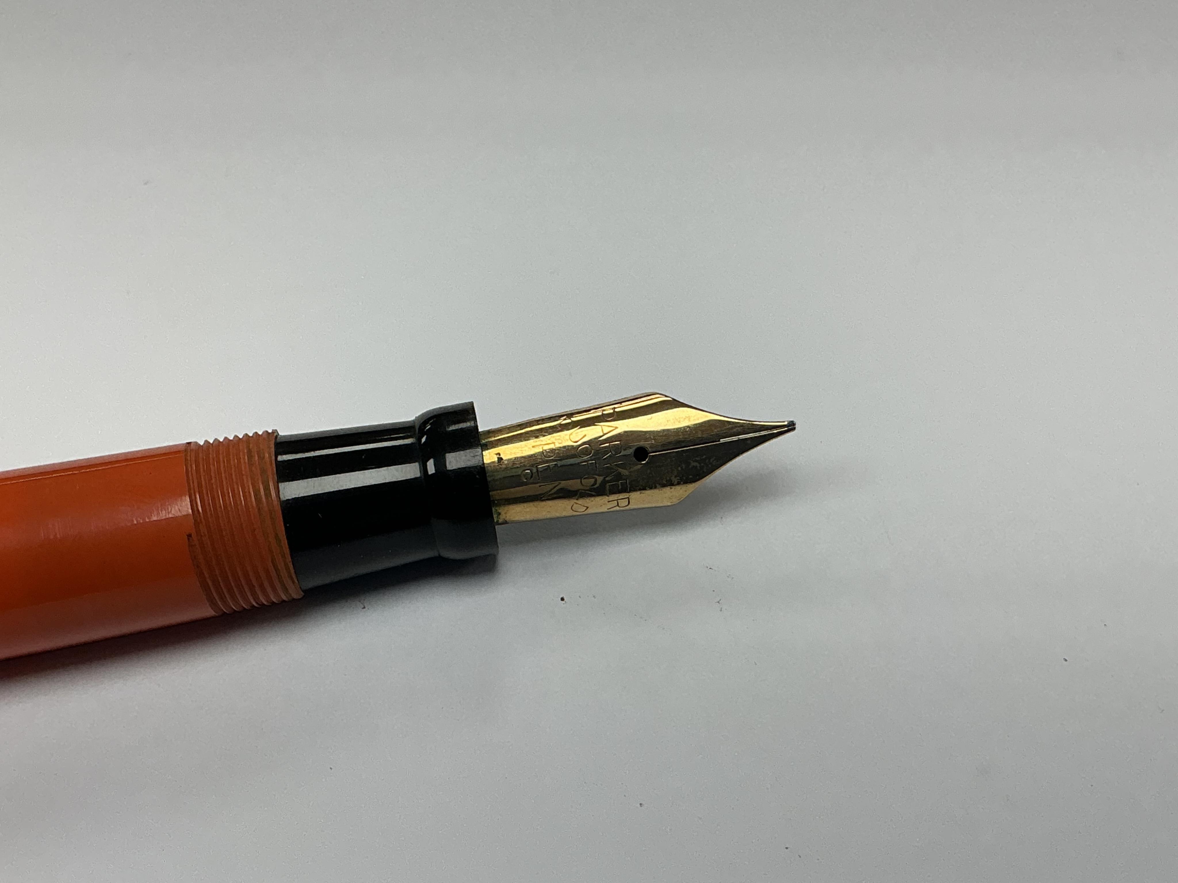 Lot 95 , A Parker Lucky Curve Duofold Senior in red hard rubber with 'large' barrel imprint