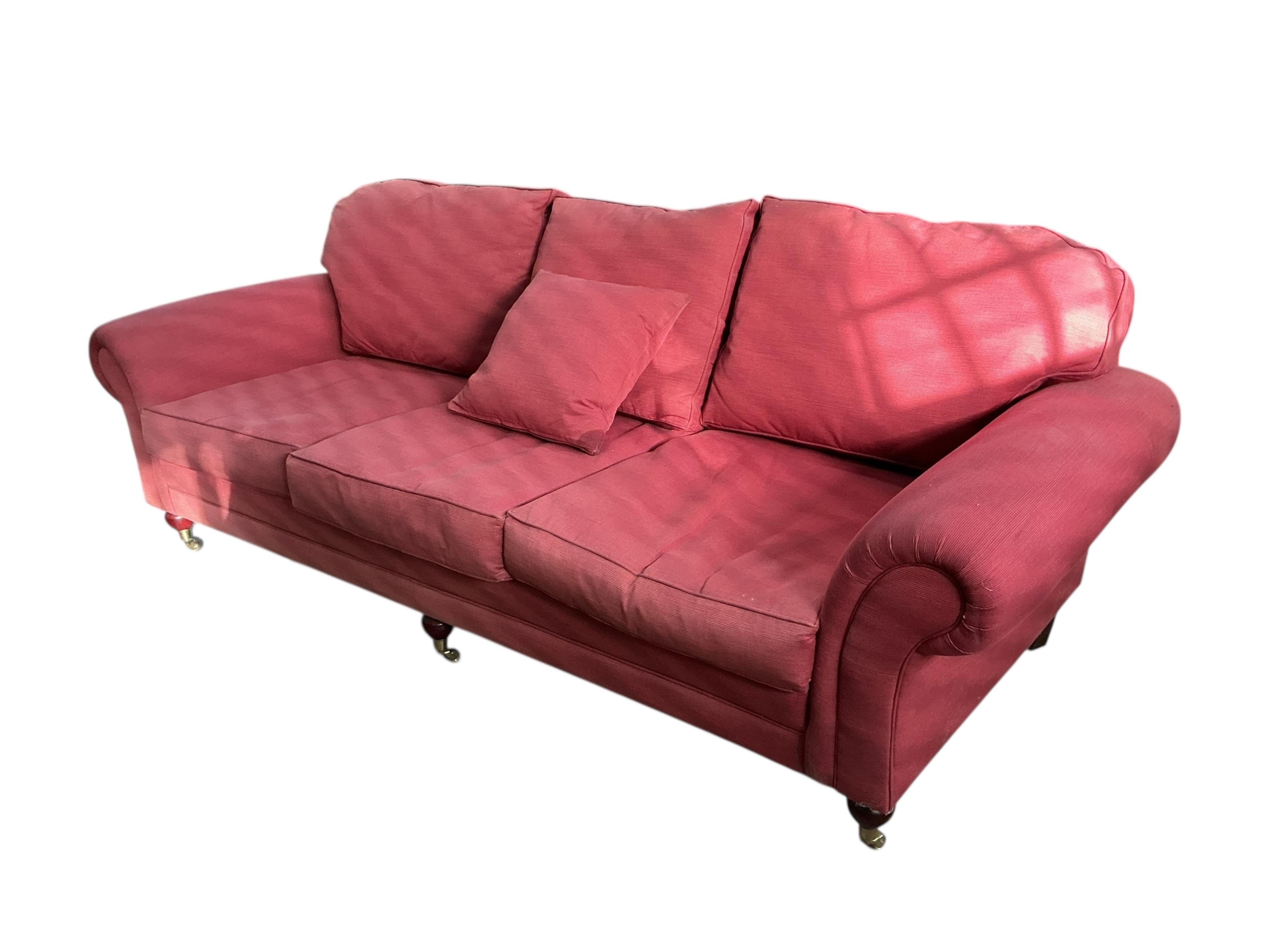 A Howard style three seater upholstered sofa, width 250cm, depth 100cm, height 78cm