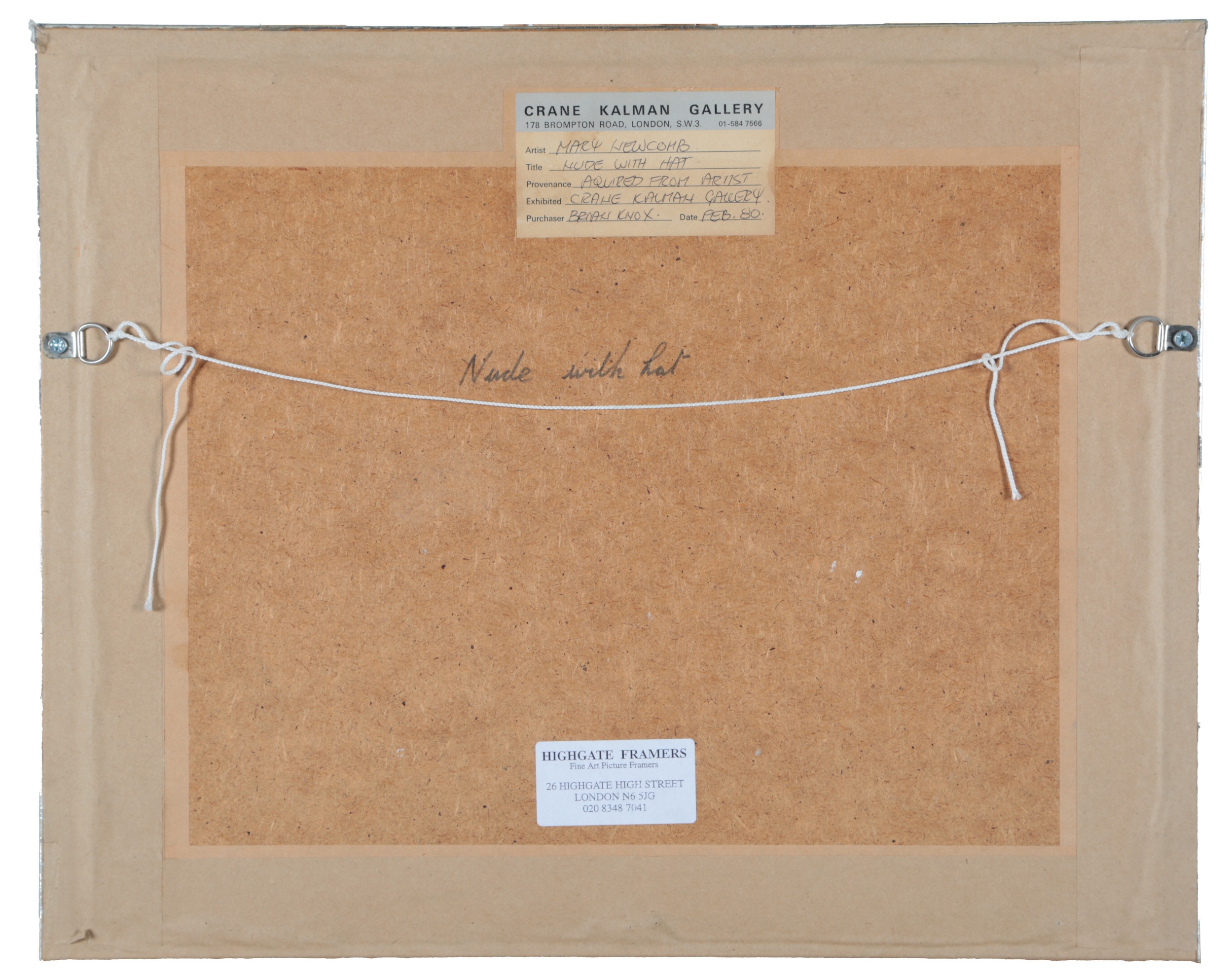 Lot 82 , Mary Newcomb, (1922-2008), 'Nude with Hat'
