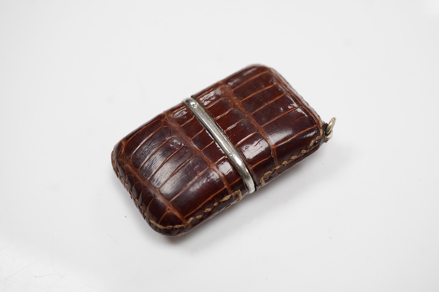 Lot 1908 , A mid 20th century leather mounted steel Movado travelling watch, with arrow head and quarterly Arabic numerals, 40mm.