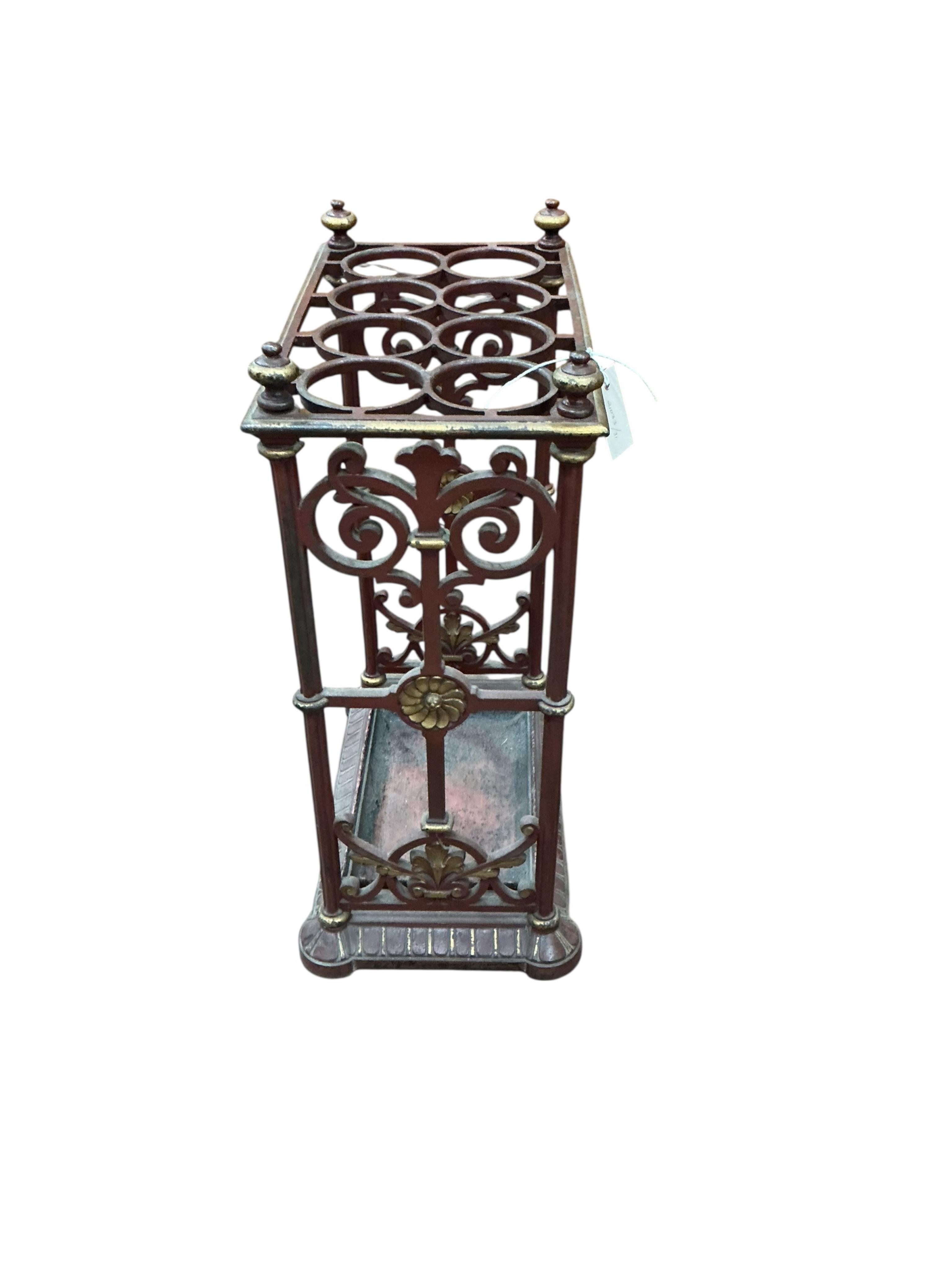 Lot 1040 , A Victorian painted cast iron stick stand, width 46cm, depth 28cm, height 65cm