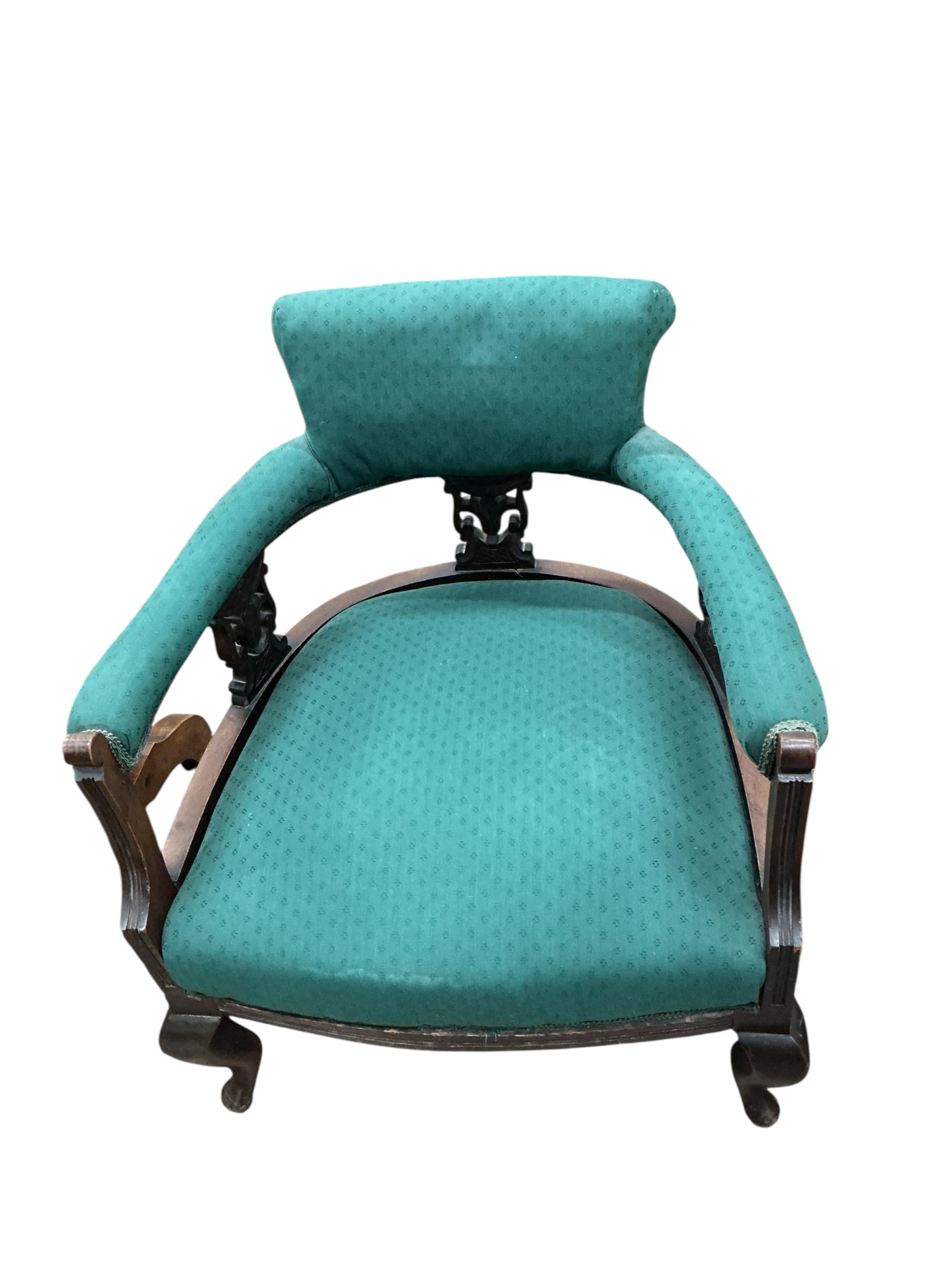 Lot 1097 , An early 20th century American rocking chair and a Victorian tub salon chair