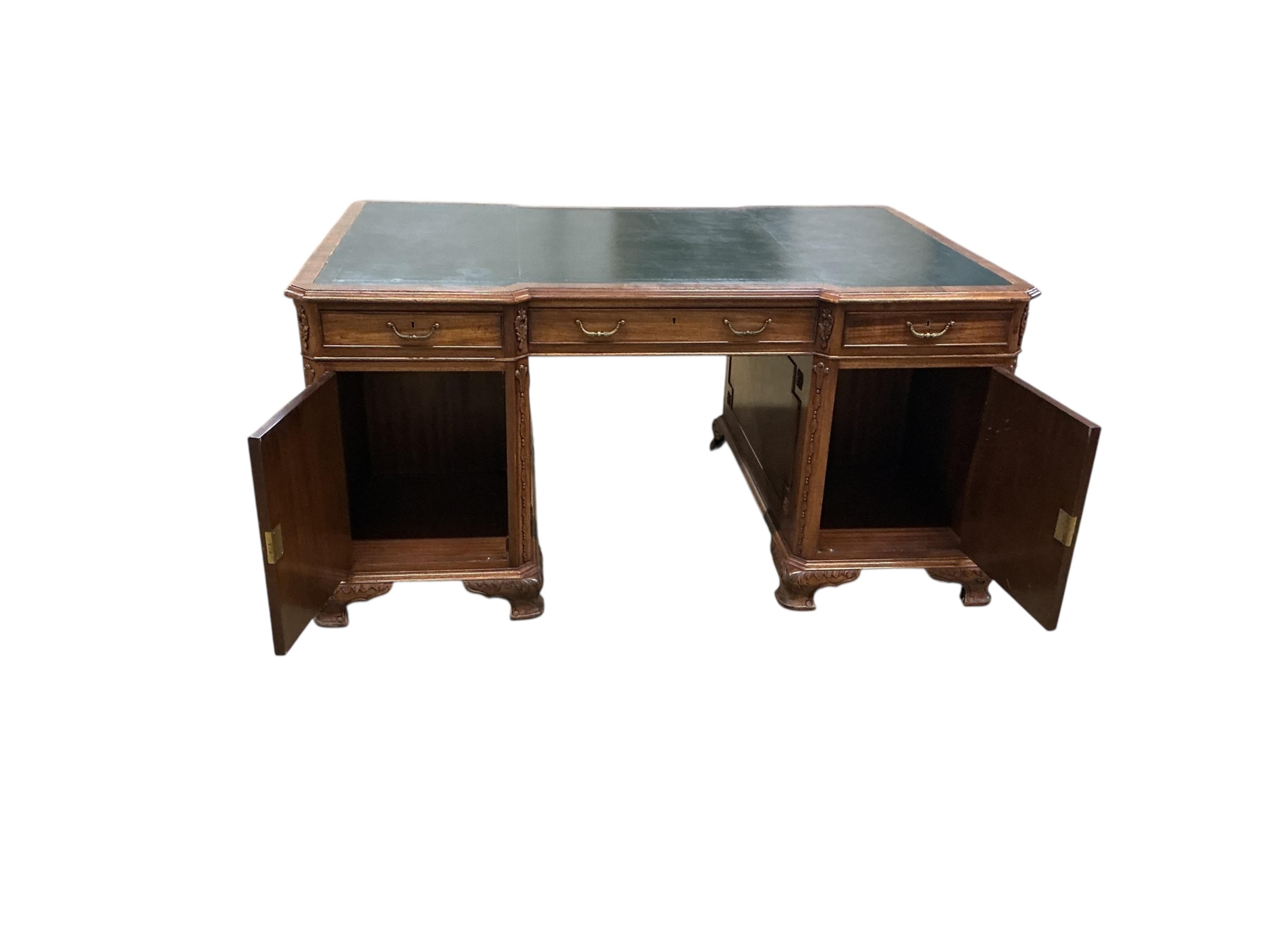 Lot 218 , A George III style mahogany pedestal partner's desk, width 156cm, depth 100cm, height 76cm
