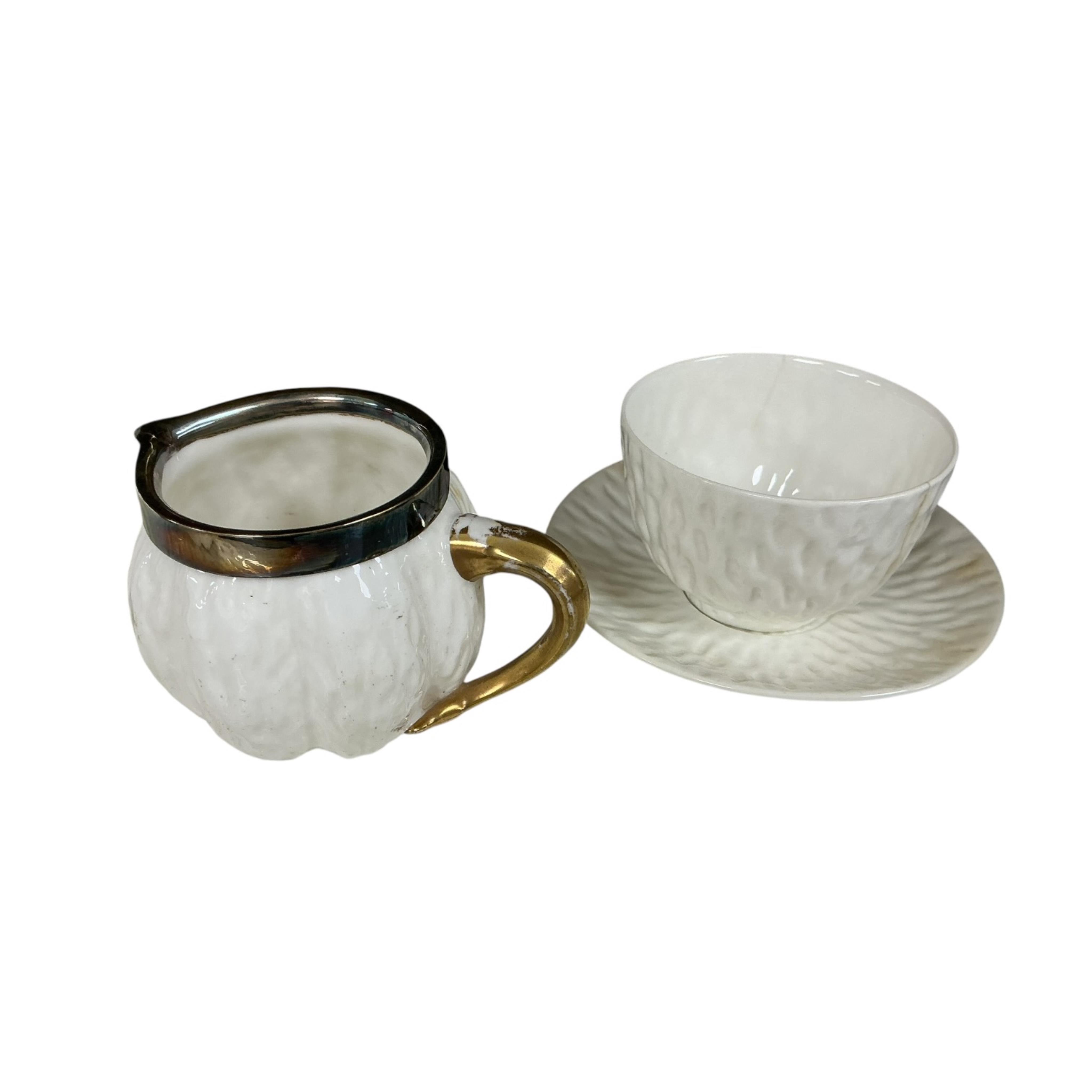 Lot 1297 , Dr Christopher Dresser (1834-1904), for Coalport, a téte a téte tea service with plated mounts, tray 41cm wide