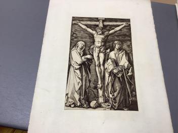 17. Christ crucified; below, the Virgin Mary and St John. Engraved in the school of Marcantonio, probably after a picture by Dürer.