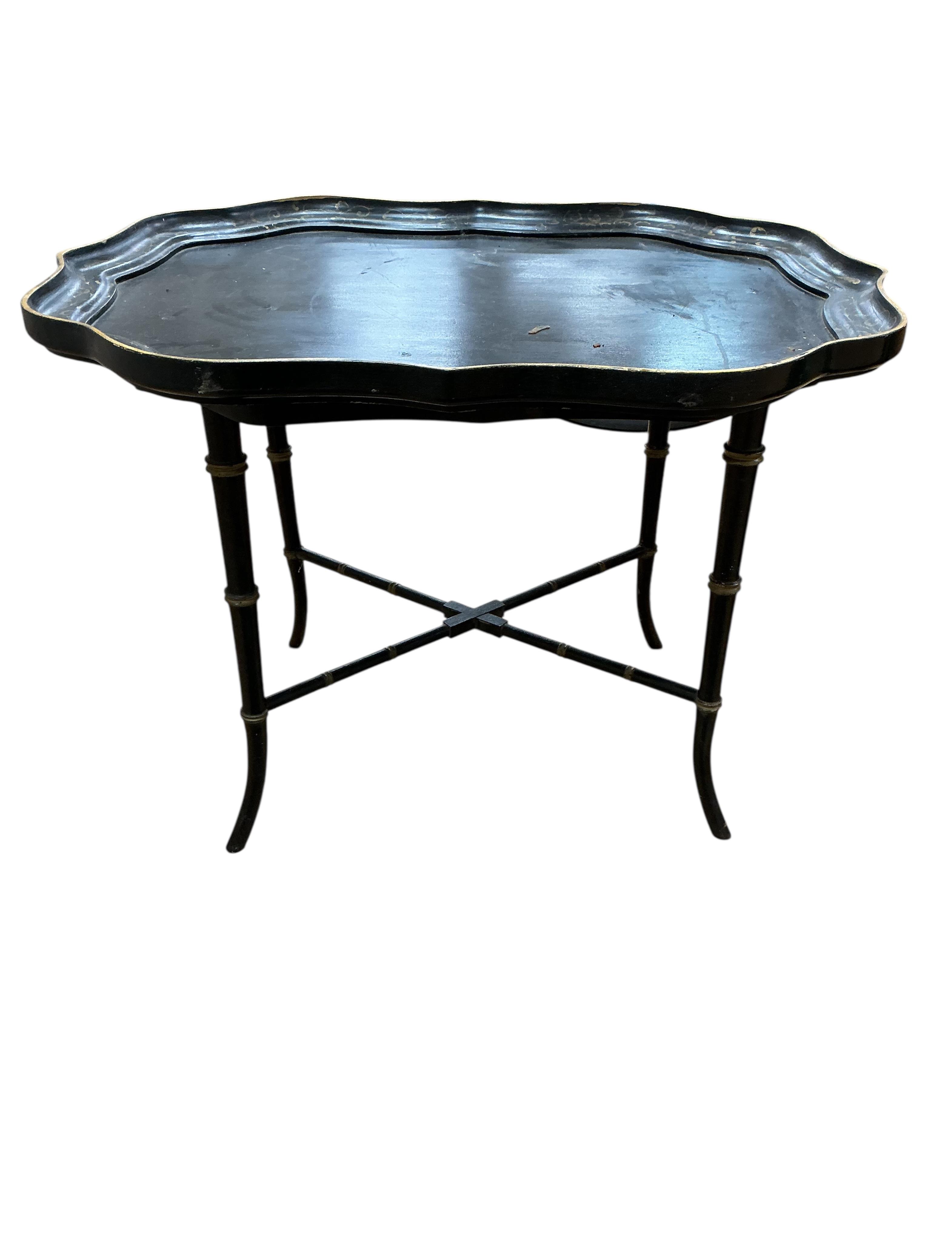 Lot 495 , A Tole floral painted tray and a papier mache on stand - 79cm x 60cm