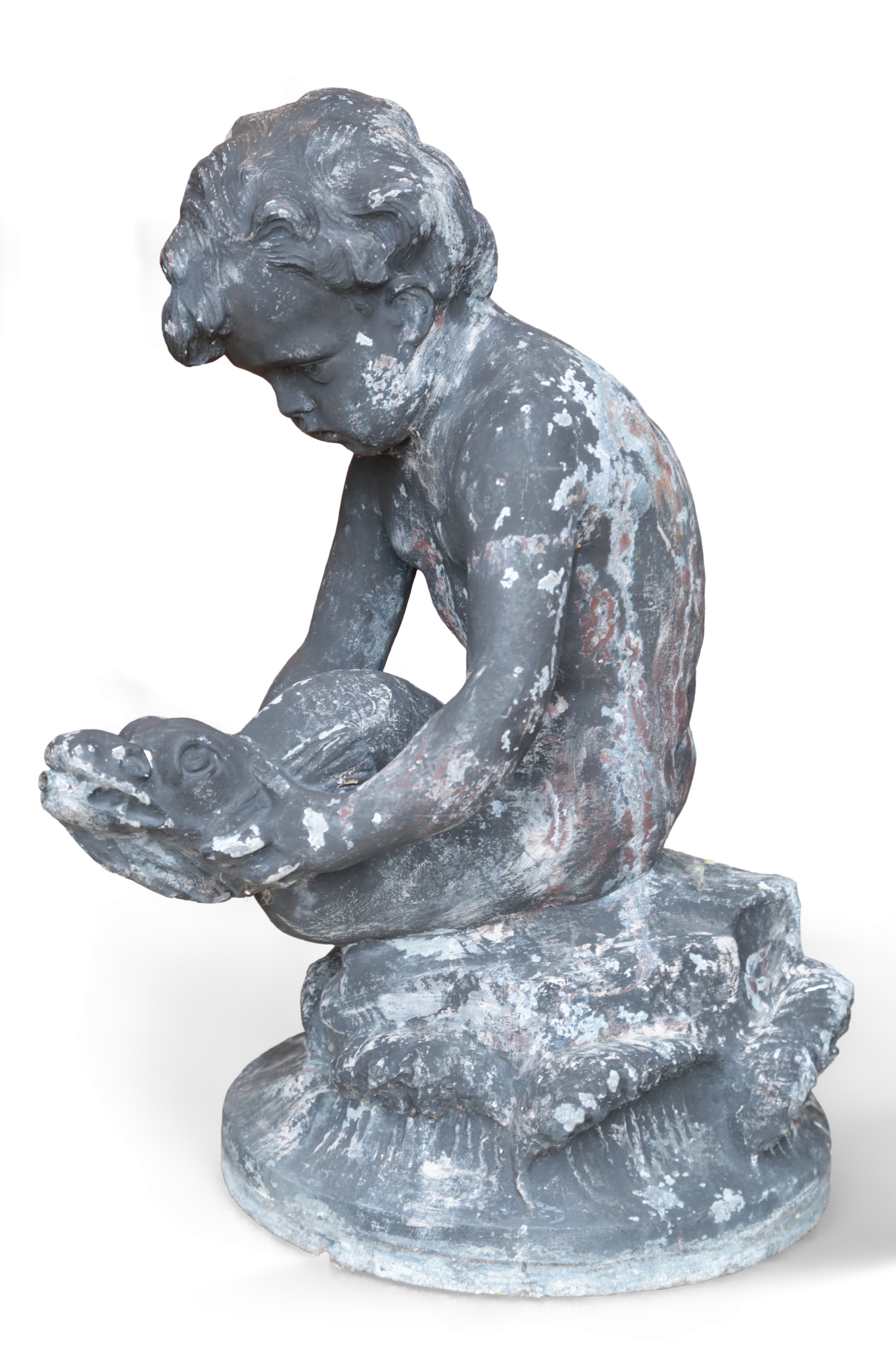Lot 329 , A lead fountain modelled as a putti grasping a dolphin or fish