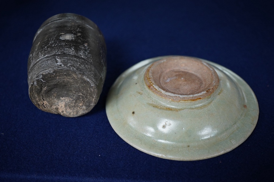 A Yuan green pottery glazed dish and bucket - 10cm high