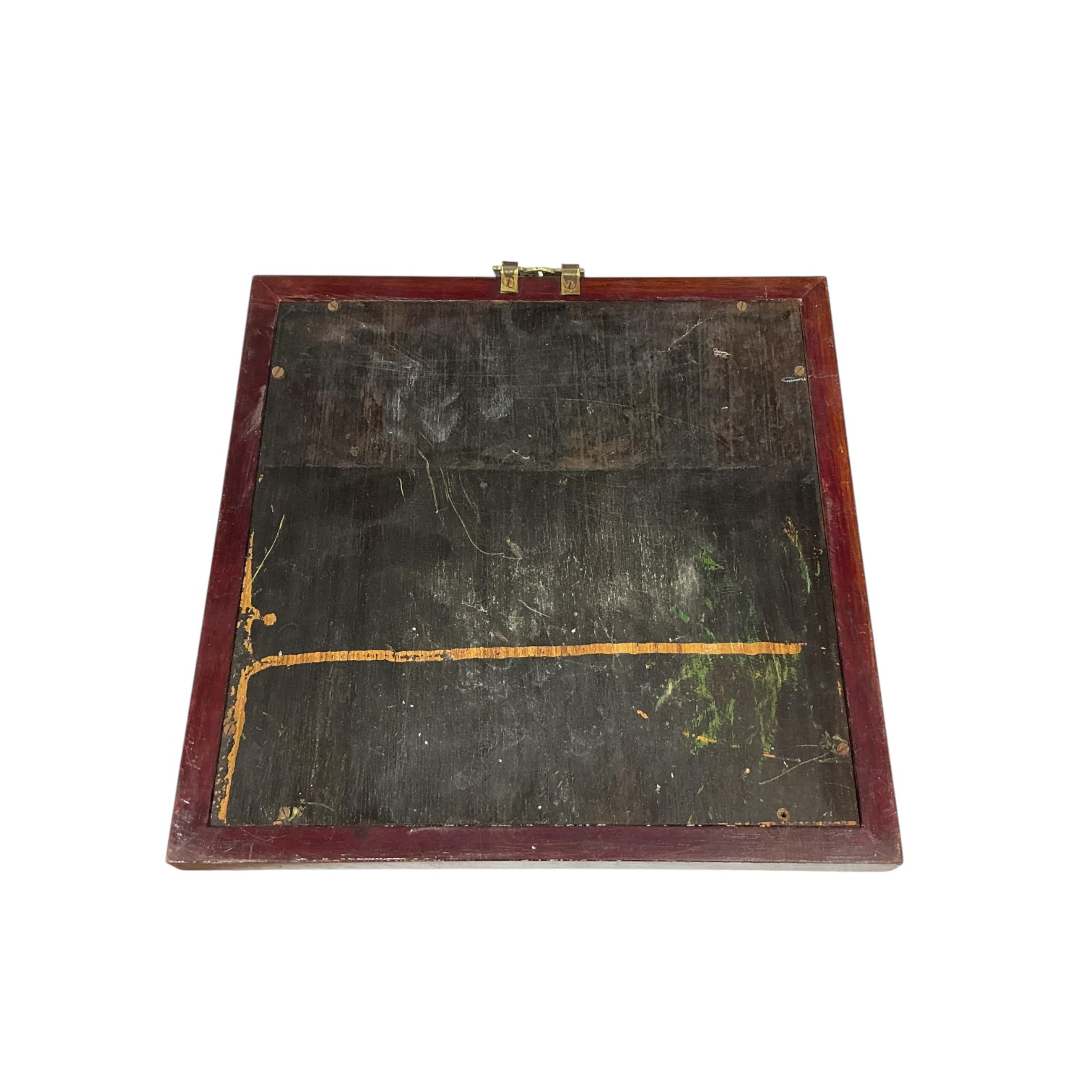 A framed Chinese porcelain tile, painted in blue enamel, tile 25cm square