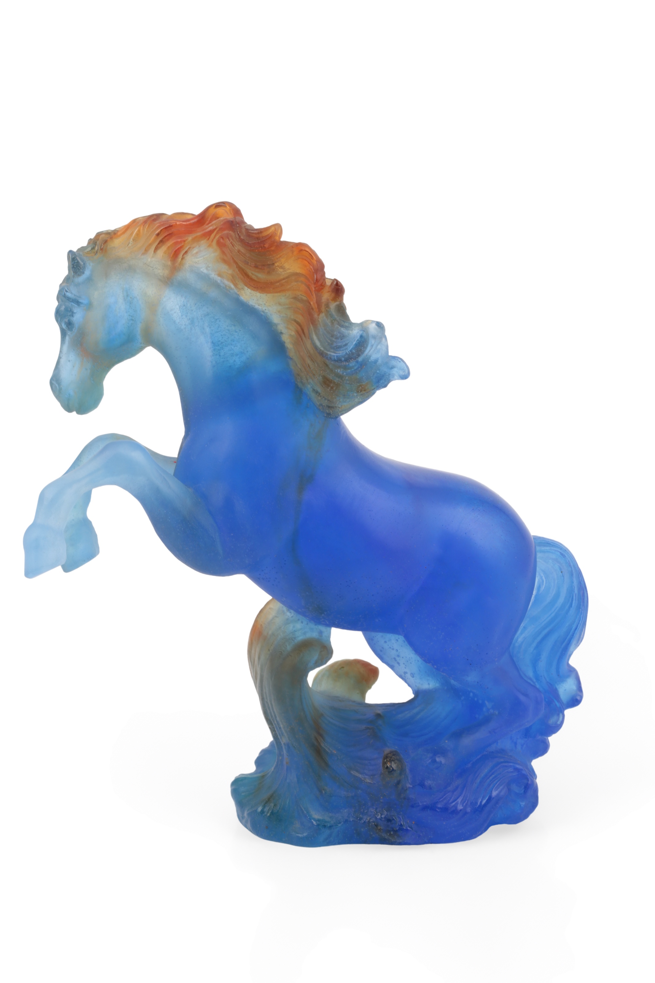 Daum, Nancy: A pâte-de-verre rearing horse, from the 'Chevaux De Marly' collection, etched signature to the underside, 22cm high