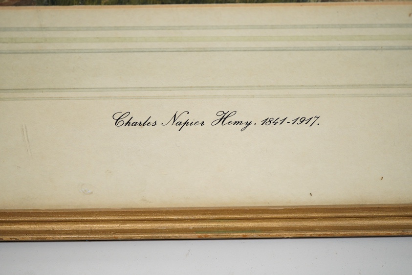 Lot 1754 , Attributed to Charles Napier Hemy RA (1841-1917), moored fishing boats along a coastline, monogrammed CH, watercolour, 14 x 19cm