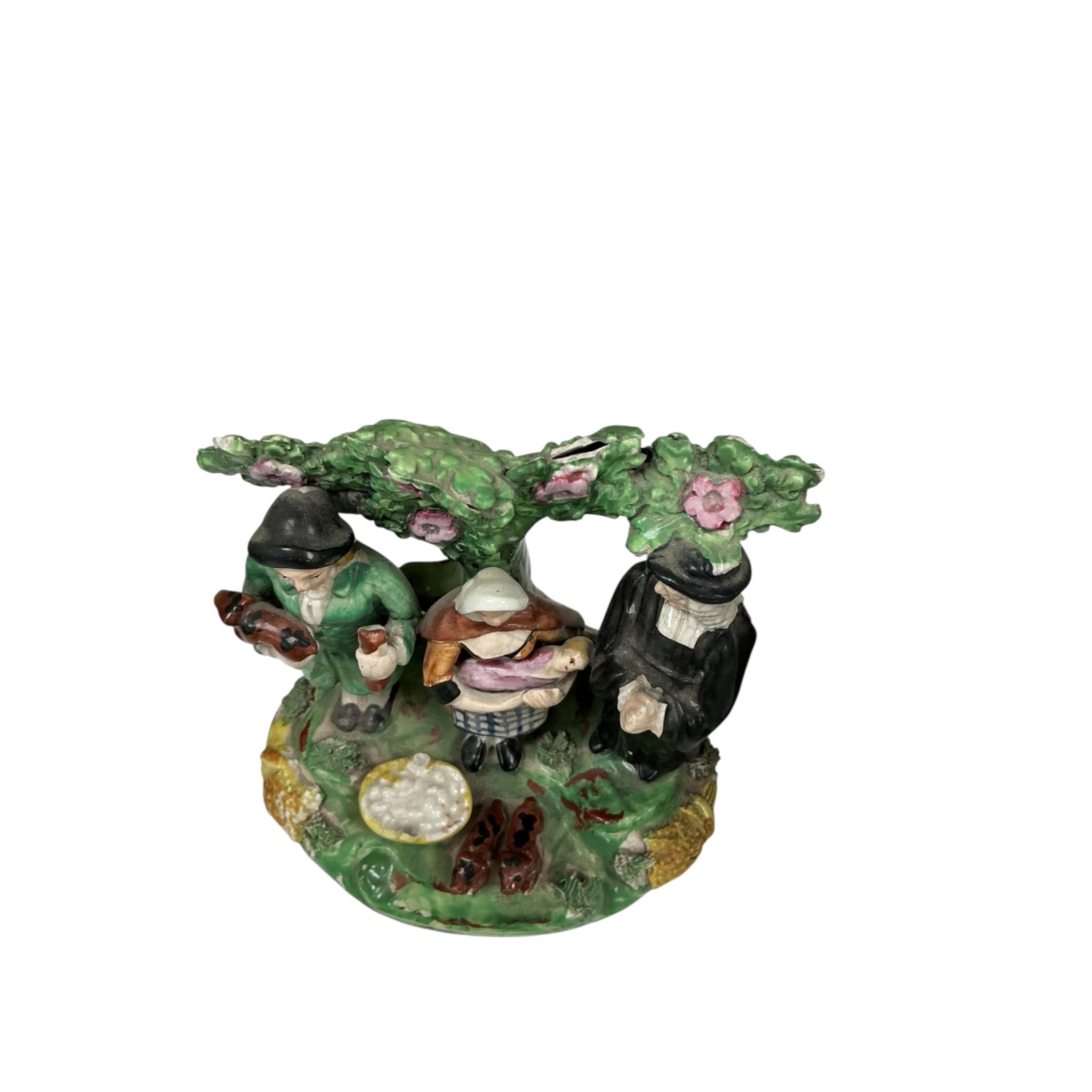Lot 1386 , A collection of 19th century Staffordshire figures, to inc. ‘The Tithe Pig’, a pair of sheep, and the ‘Widow’, largest 26cm tall, (5).