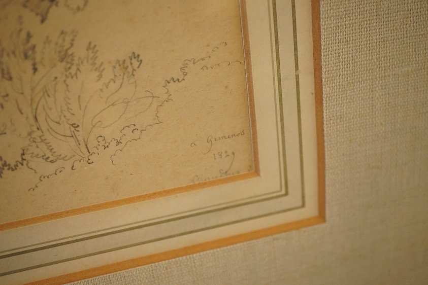 Theodore Caruelle d’Aligny (French, 1798-1871), ‘Moucher va Rhône’, dated 1829, pencil study, Rowley Gallery label verso, 26 x 18cm