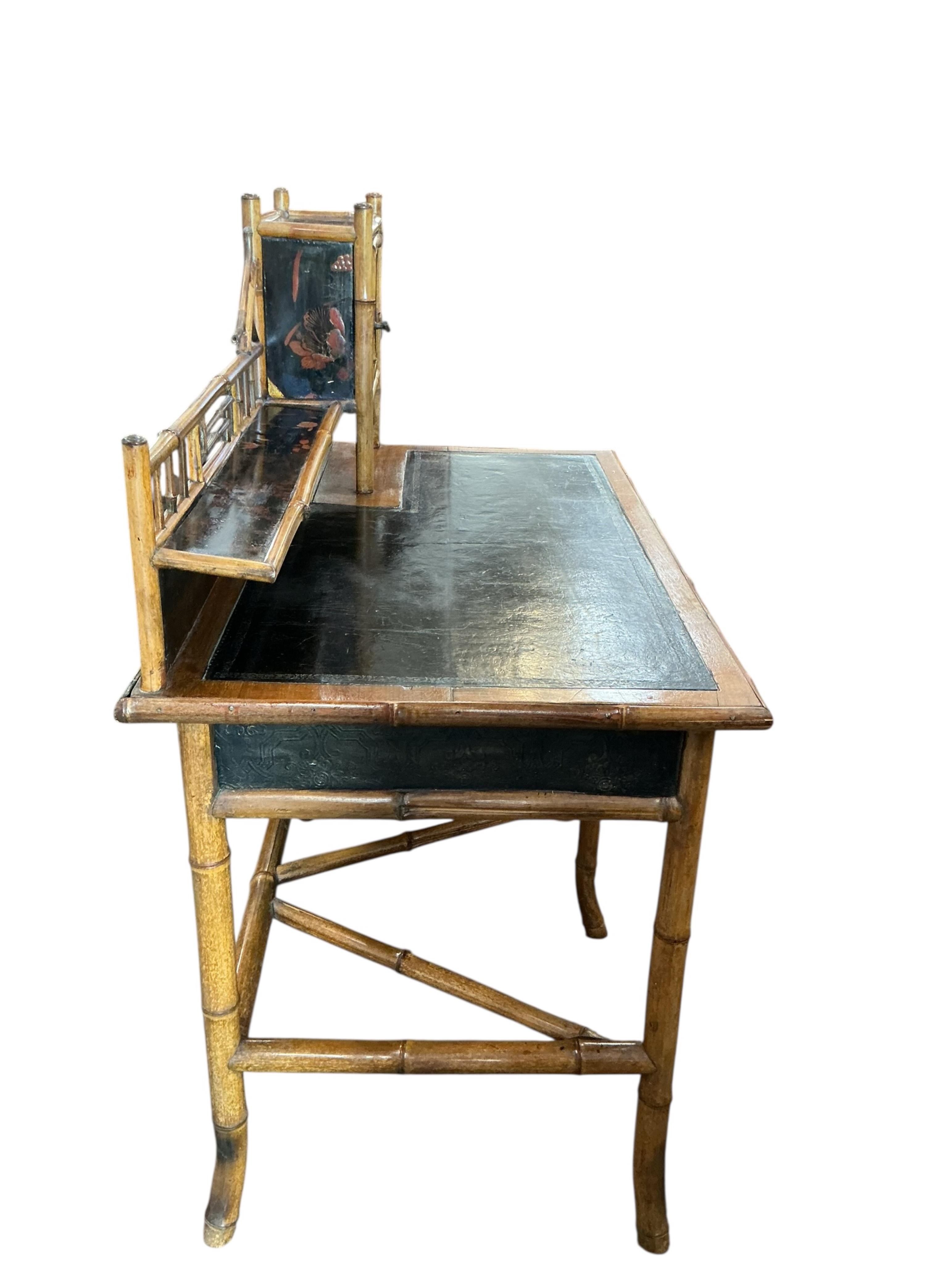 A Victorian lacquer and bamboo kneehole desk, width 93cm, depth 58cm, height 110cm