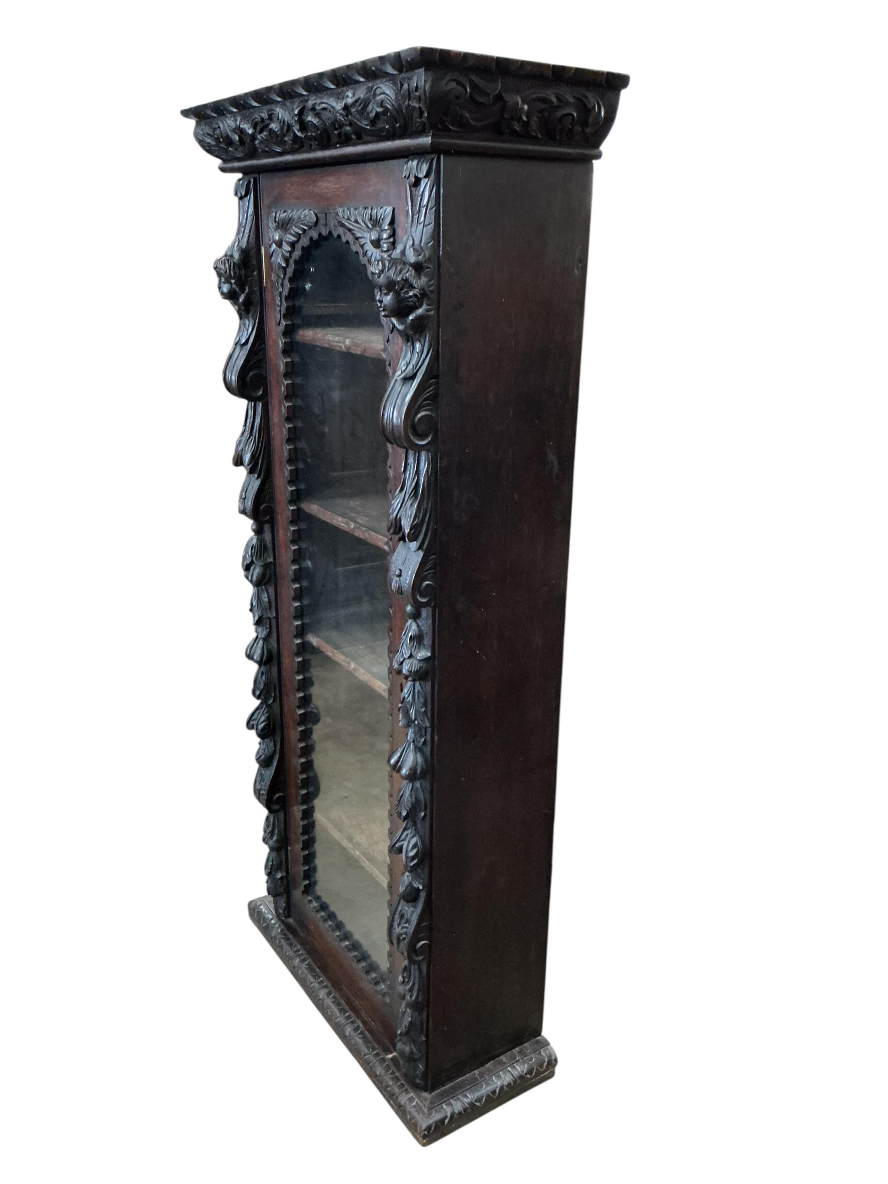 Lot 1058 , A 19th century Flemish carved glazed oak narrow bookcase, width 68cm, depth 29cm, height 147cm