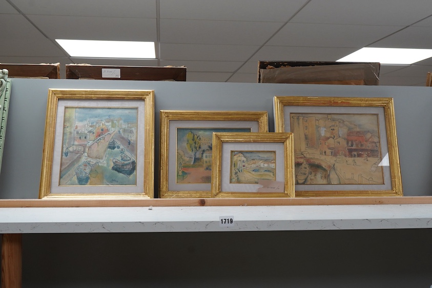 Lot 1719 , 20th century school, riverscapes and parkland, a set of four mixed medias, largest 20 x 25cm